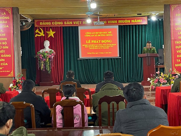 Phát biểu chỉ đạo tại Lễ ra quân, đồng chí Mai Thế Công – Phó Chủ tịch UBND xã biểu dương, ghi nhận, đánh giá cao những kết quả lực lượng Công an xã đạt được trong năm 2024, đã góp phần phục vụ nhiệm vụ phát triển kinh tế - xã hội của địa phương. Trong thời gian tới, nhất là trước, trong, sau Tết Nguyên đán Ất Tỵ 2025, đồng chí Phó Chủ tịch UBND xã yêu cầu: Lực lượng Công an xã tiếp tục bám sát chỉ đạo của Công an huyện, Đảng ủy, HĐND, UBND xã để tổ chức triển khai thực hiện có hiệu quả đợt cao điểm, hoàn thành thắng lợi các mục tiêu đã đề ra.