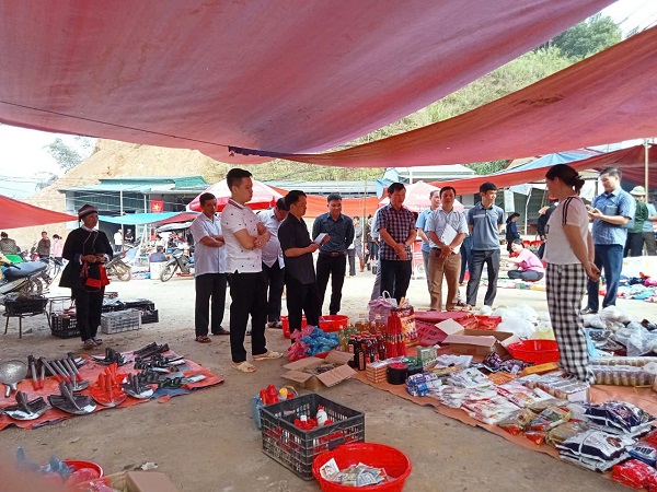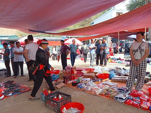 Tại buổi khảo sát đồng chí Trần Mạnh Tuyên và các thành viên đoàn đã đến các gian hàng, các khu vực trong chợ và các khu vực xung quanh ảnh hưởng, liên quan đến việc họp chợ phiên, hộ kinh doanh buôn bán thường xuyên tại khu trung tâm xã.