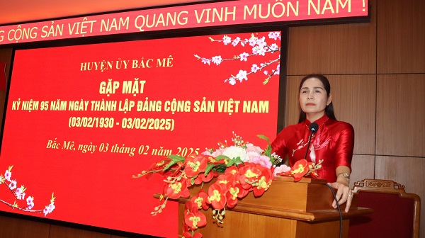 Tại lễ kỷ niệm, các đại biểu cùng nhau ôn lại truyền thống vẻ vang 95 năm của Đảng Cộng sản Việt Nam (3/2/1930 – 3/2/2025); 41 năm thành lập và phát triển của Đảng bộ huyện Bắc Mê (1/1/1984 – 1/1/2025). Phát huy truyền thống đó, những năm qua, Đảng bộ huyện Bắc Mê đã tập trung lãnh đạo hệ thống chính trị và các tầng lớp nhân dân nỗ lực vượt khó, thực hiện thắng lợi các mục tiêu phát triển kinh tế, chính trị, văn hóa, xã hội và giữ vững quốc phòng - an ninh.