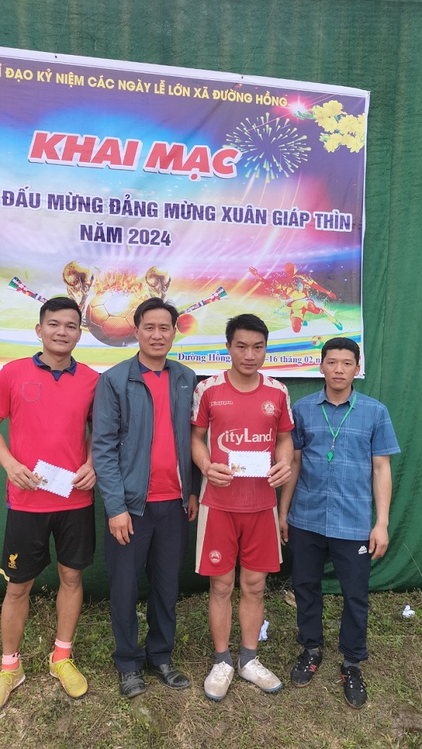 Trong không khí vui tươi, phấn khởi của những ngày đầu Xuân, ngày 15/2 – 16/2/2024 (tức mùng 6 – 7 Tết), tại Sân thể thao xã Đường Hồng, UBND xã tổ chức khai mạc Giải thể thao mừng Đảng, mừng Xuân Giáp Thìn 2024. Năm nay, Giải gồm các môn thi đấu: Bóng đá 7 người, Đẩy gậy, Bắn nỏ, Bịt mắt bắt vịt.